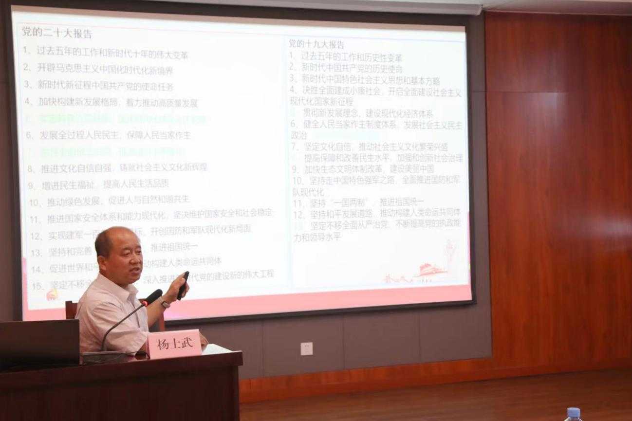 學(xué)習(xí)宣傳貫徹黨的二十大精神是當(dāng)前和今后一個(gè)時(shí)期的首要政治任務(wù),為深入學(xué)習(xí)宣傳貫徹黨的二十大精神,進(jìn)一步凝聚共識(shí),筑牢思想根基,財(cái)金集團(tuán)特邀中共市委講師團(tuán)副團(tuán)長、教授楊士武同志做學(xué)習(xí)貫徹黨的二十大精神專題宣講。宣講會(huì)以原原本本學(xué)習(xí)研讀黨的二十大報(bào)告和黨章為綱領(lǐng),帶領(lǐng)大家認(rèn)真領(lǐng)悟黨的二十大提出的新思想新論斷、作出的新部署新要求。