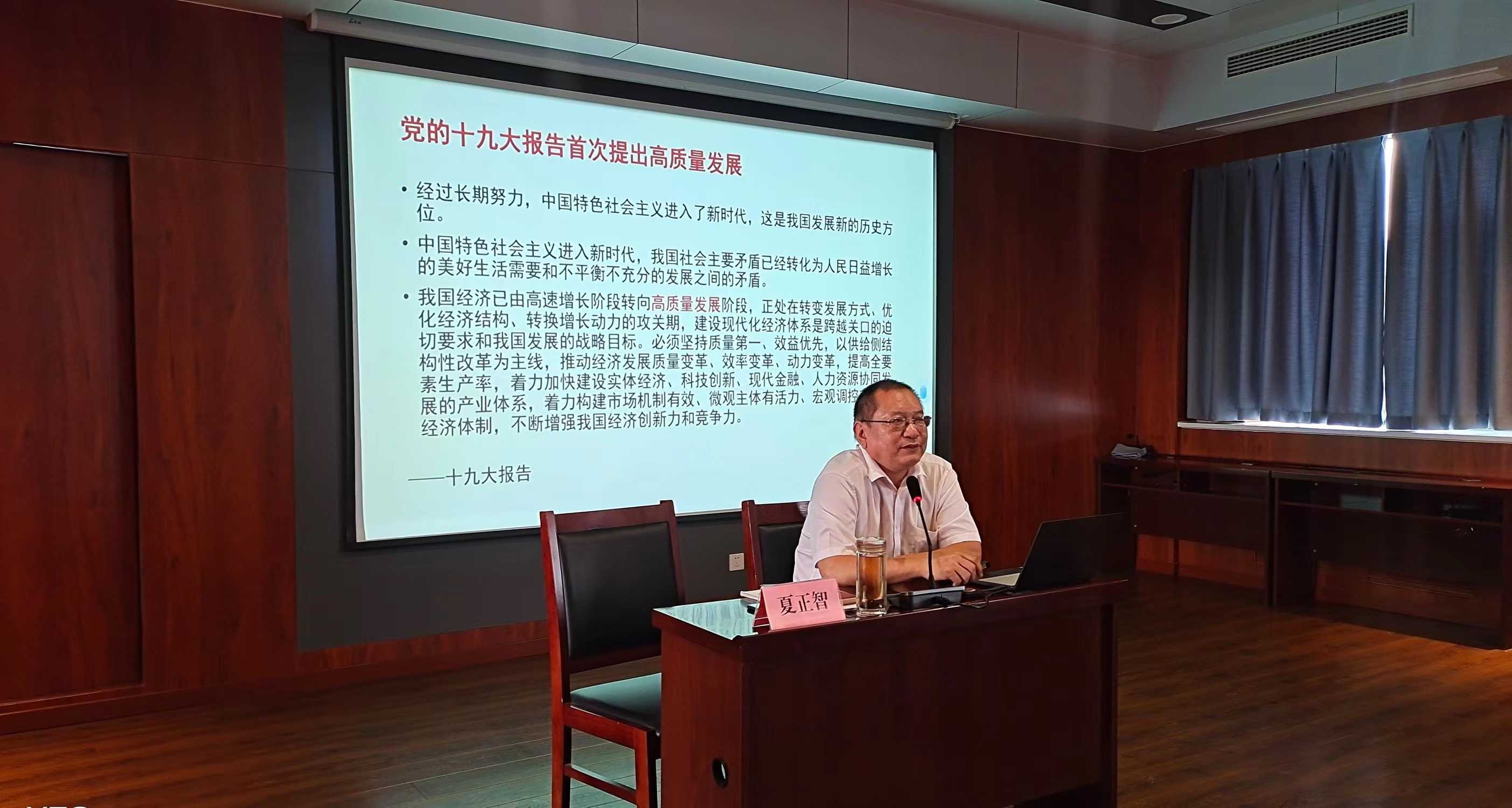 為深入學(xué)習(xí)宣傳貫徹習(xí)近平新時(shí)代中國特色社會(huì)主義思想,全面落實(shí)“學(xué)思想、強(qiáng)黨性、重實(shí)踐、建新功”主題教育要求,進(jìn)一步強(qiáng)化“提標(biāo)提速提能力、敢闖敢干敢爭(zhēng)先”的工作標(biāo)準(zhǔn),市國資委于近日組織開展“五進(jìn)”送黨課活動(dòng),市委黨校國資委分校選派優(yōu)秀骨干教師在市國資系統(tǒng)送課“進(jìn)企業(yè)、進(jìn)項(xiàng)目”。9月1日,市財(cái)金集團(tuán)特邀中共聊城市委黨校經(jīng)濟(jì)管理教研室夏正智教授講授黨課《加快構(gòu)建新發(fā)展格局 著力推動(dòng)高質(zhì)量發(fā)展》,市財(cái)金集團(tuán)中層及以上人員、子公司負(fù)責(zé)人、各支部全體黨員、黨外人士共計(jì)80余人參加學(xué)習(xí)。