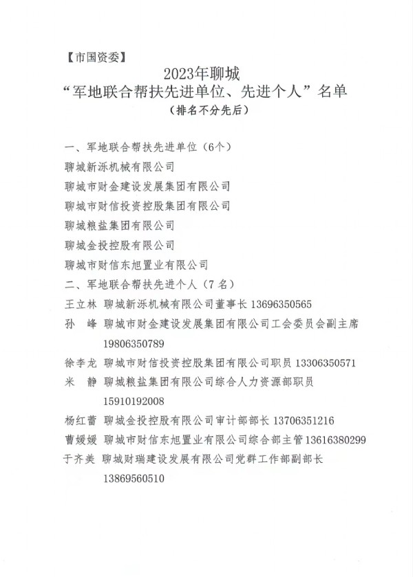 聊城市財金建設(shè)發(fā)展集團有限公司被授予“軍地聯(lián)合幫扶先進單位”榮譽稱號,工會副主席孫峰同志被評為“軍地聯(lián)合幫扶先進個人”。